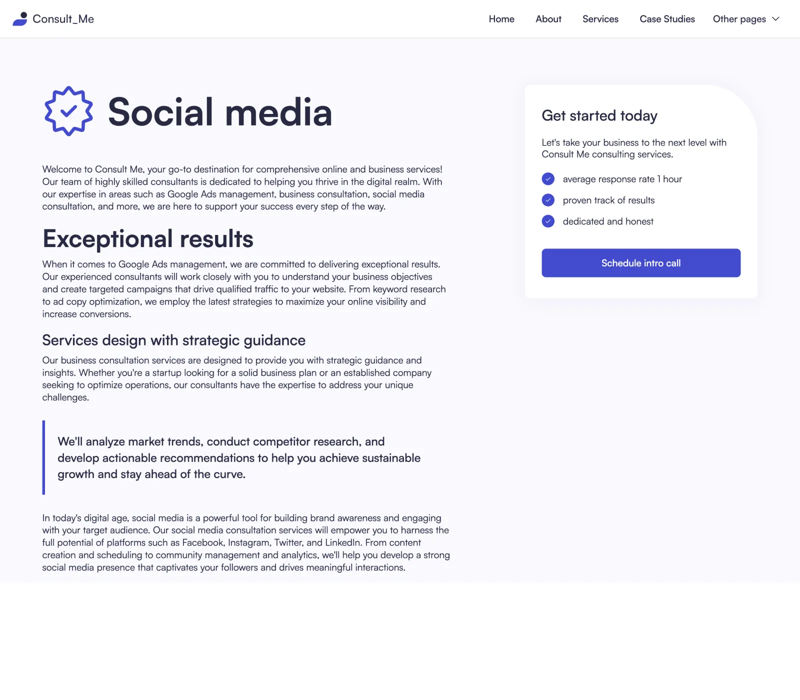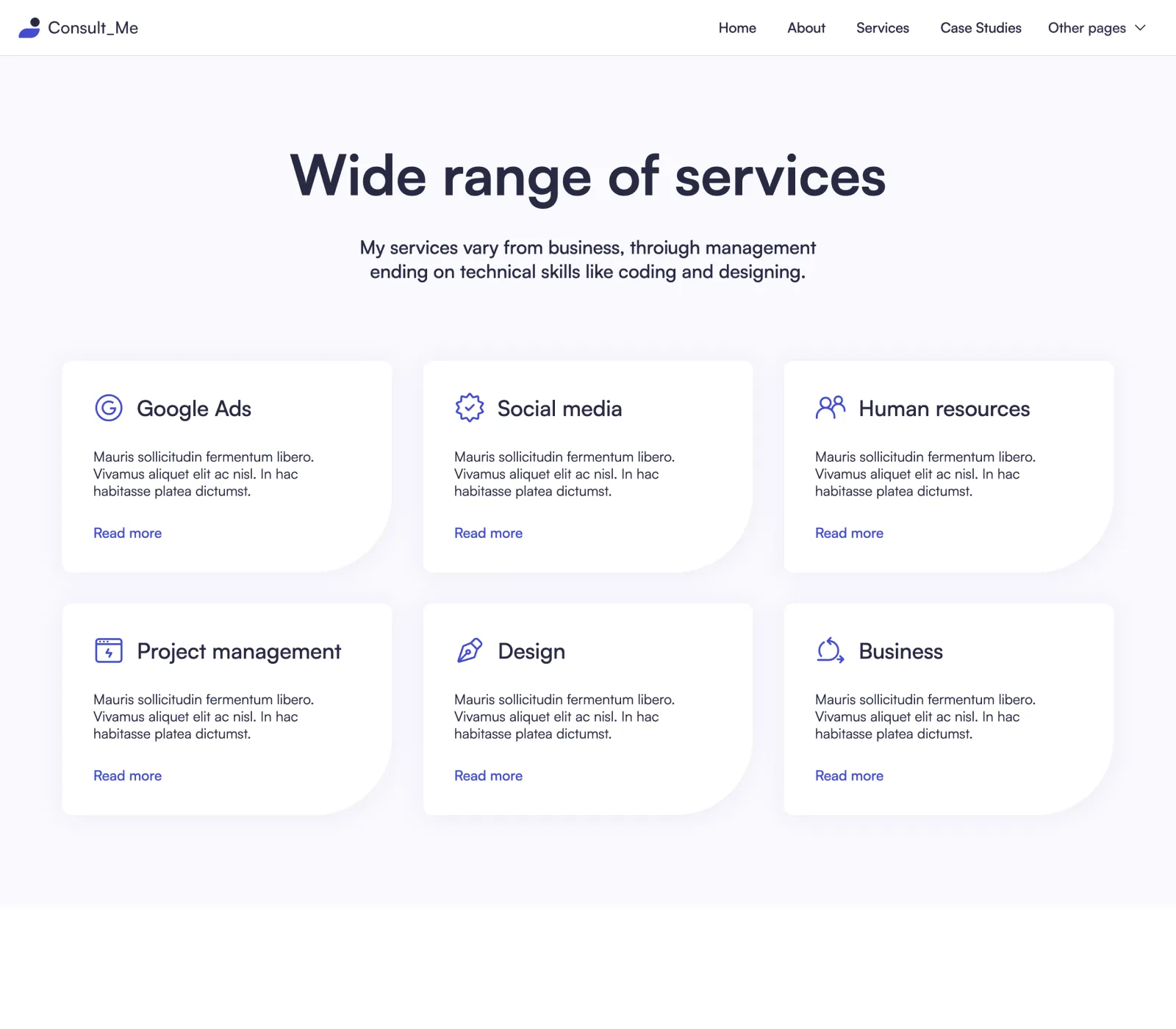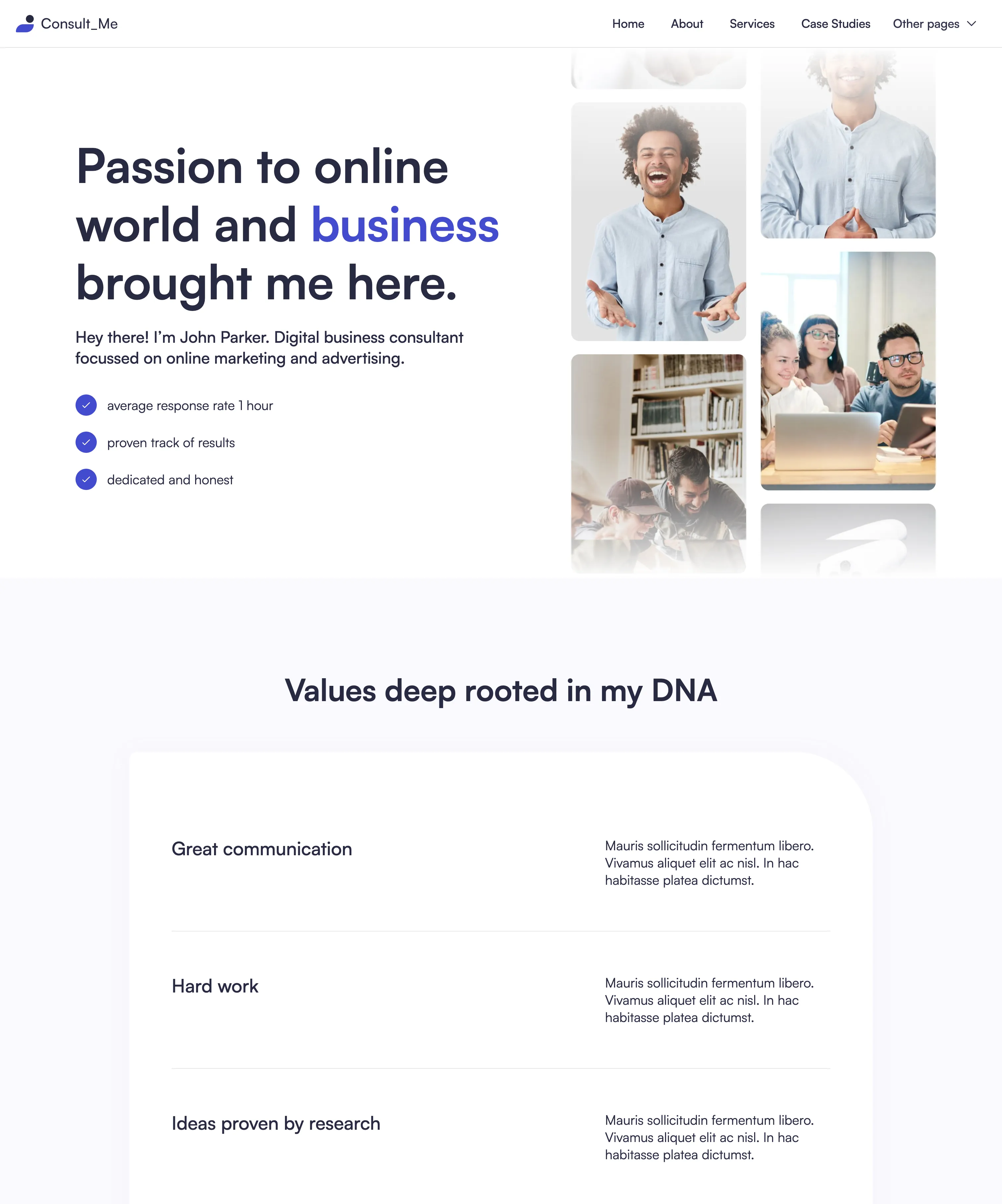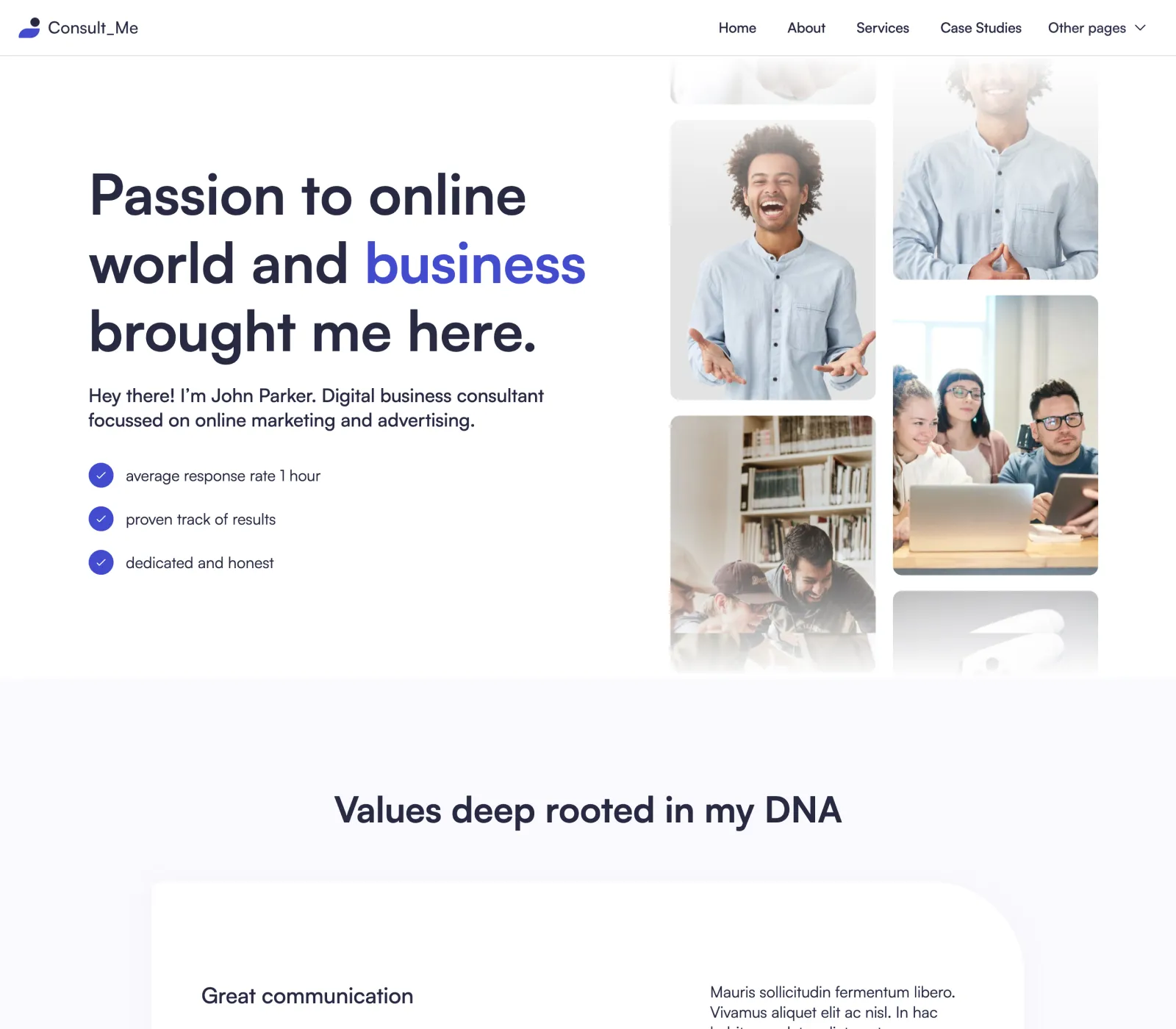 Yes, we know... it's easy to say it, but that's the fact. We did put a lot of thought into the template. Consult Me was designed by an award-winning designer. Layouts you will find in our template are custom made to fit the industry after carefully made research.
