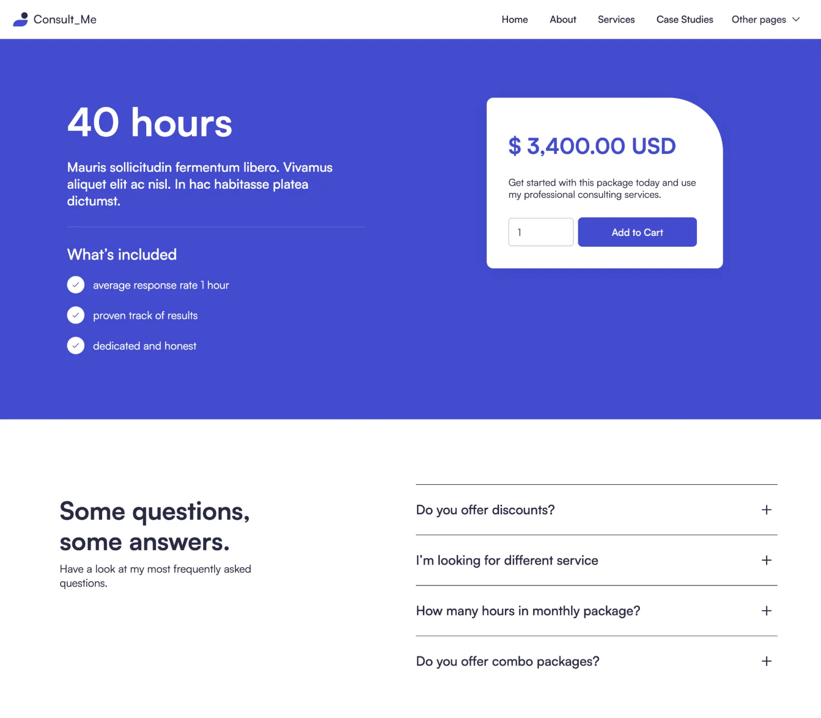 Consult Me Template comes with eCommerce set up, so you can start selling your works straight away.